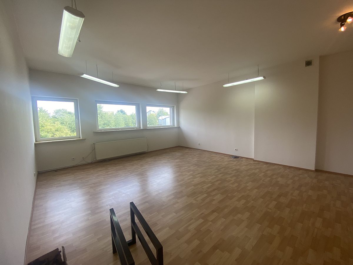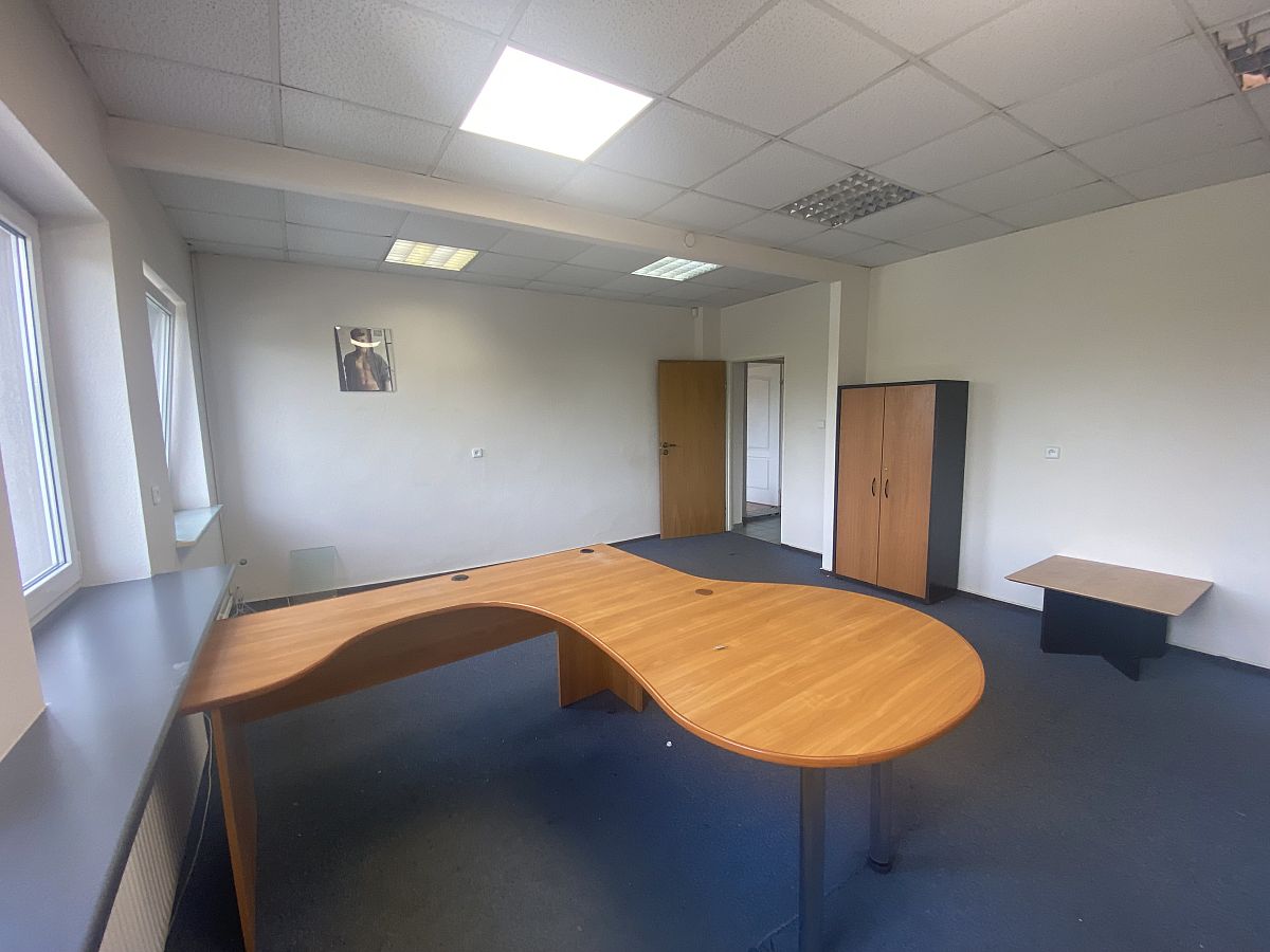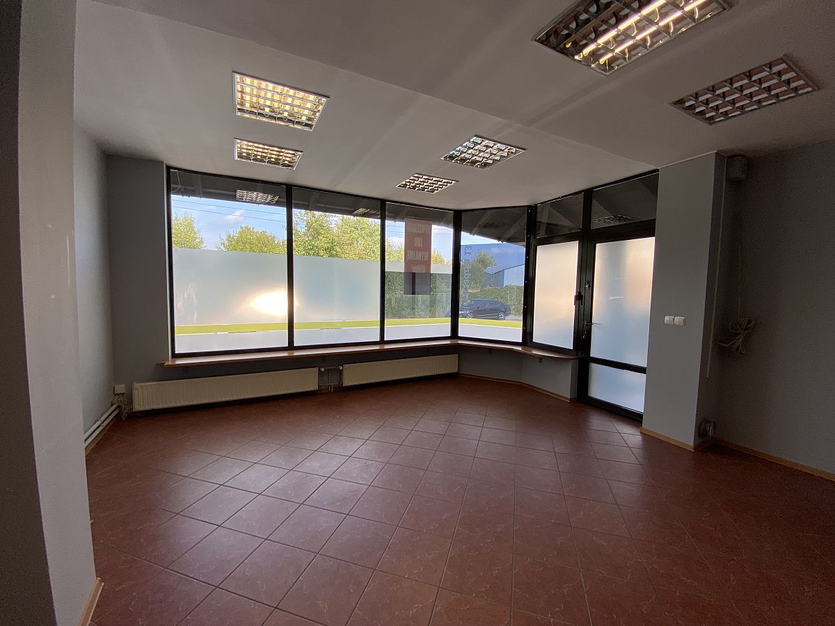 Powierzchnia całkowita 430m2. Na parterze znajduje się hala z podziałem na strefy i z salą sprzedażową z dużymi witrynami, łazienki z prysznicami. Posadzka niepylna, możliwość podziału powierzchni, brama roletowa i osobne, niezależne wejście dla klienta, kuriera. Na piętrze znajdują się 3 duże pomieszczenia biurowe (jedne z dużym tarasem) lub magazynowe, aneks kuchenny w pełni umeblowany, toaleta z prysznicem.