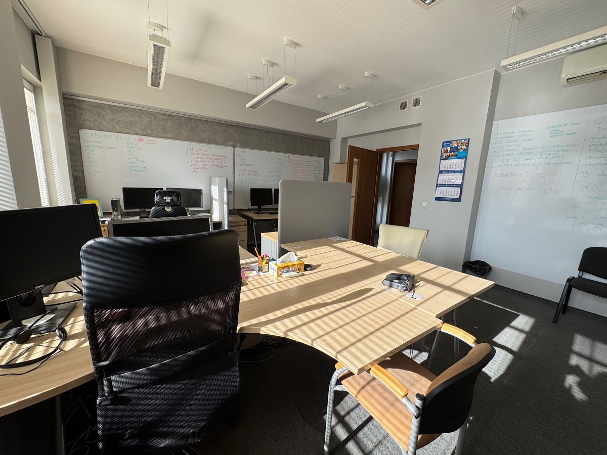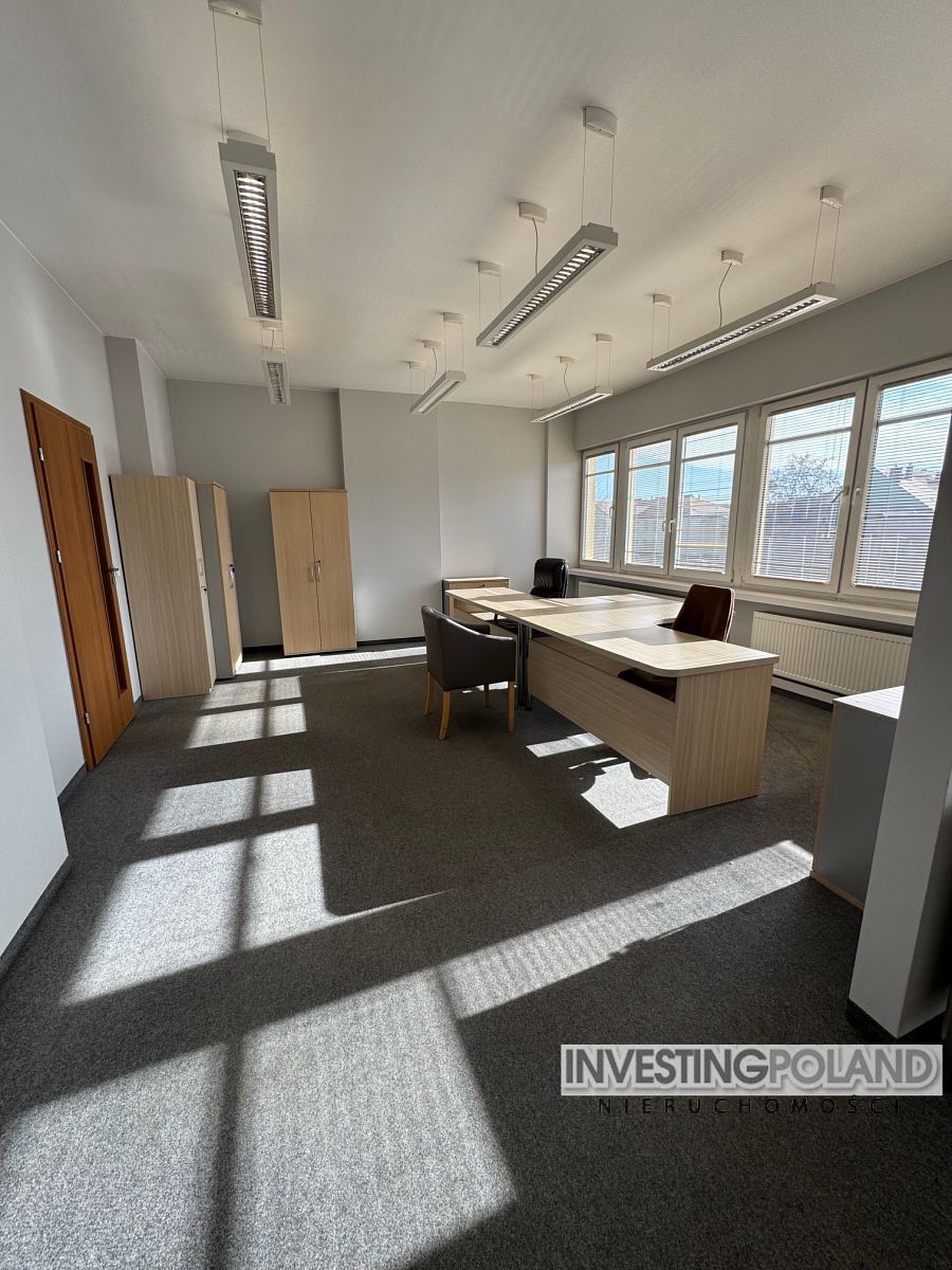 POLEĆ ZNAJOMEMU (EMAIL) Przedmiotowa nieruchomość położona w bardzo atrakcyjnej inwestycyjnie części miasta w otoczeniu nieruchomości usługowych, handlowych, dogodny dostęp do głównych ciągów komunikacyjnych i znakomite skomunikowanie z centrum miasta. Jako gospodarcza lokalizacja - bardzo dobra. Budynek o 4 kondygnacjach naziemnych , posiada podjazd dla osób niepełnosprawnych oraz windę .Obecnie w budynku mieszczą się biura prywatnych firm. Przedmiotem sprzedaży jest niezależna powierzchnia biurowo-usługowa o wielkość 535m2 . Powierzchnia jest podzielona na 18 pokoi biurowych ( niektóre z możliwością przejścia wewnątrz powierzchni, lub niezależnie z korytarza), aneks kuchenny, salę konferencyjną, 2 toalety , holl, powierzchnię magazynową. Wysokość pomieszczeń 3m. Wszystkie pomieszczenia biurowe są umeblowane, klimatyzowane, na podłodze wysoko gatunkowa wykładzina. Całość wykończona bardzo starannie z użyciem wysokiej klasy materiałów budowlanych i wykończeniowych. Lokal zadbany, należycie utrzymany. Standard wykończenia i aranżacji wnętrz, jak również poziom funkcjonalno-użytkowy ocenia się jako wysoki. Przed budynkiem około 10 miejsc parkingowych.