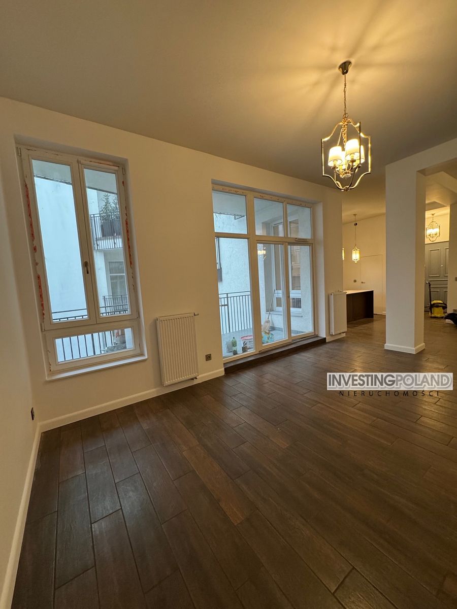 Jasne, słoneczne, wysokie (3,58 m), trzypokojowe mieszkanie. Powierzchnia 75m2 składa się z przestronnego, ustawnego salonu z dużymi, dwuskrzydłowymi oknami, połączonego z aneksem kuchennym i spiżarką oraz 2 pokoi , 2 łazienek i komunikacji , balkon o powierzchni około 10m2. Pomieszczenia mechanicznie wentylowane, ogrzewanie miejskie, okna drewniane dwuszybowe. Umeblowanie na życzenie klienta.